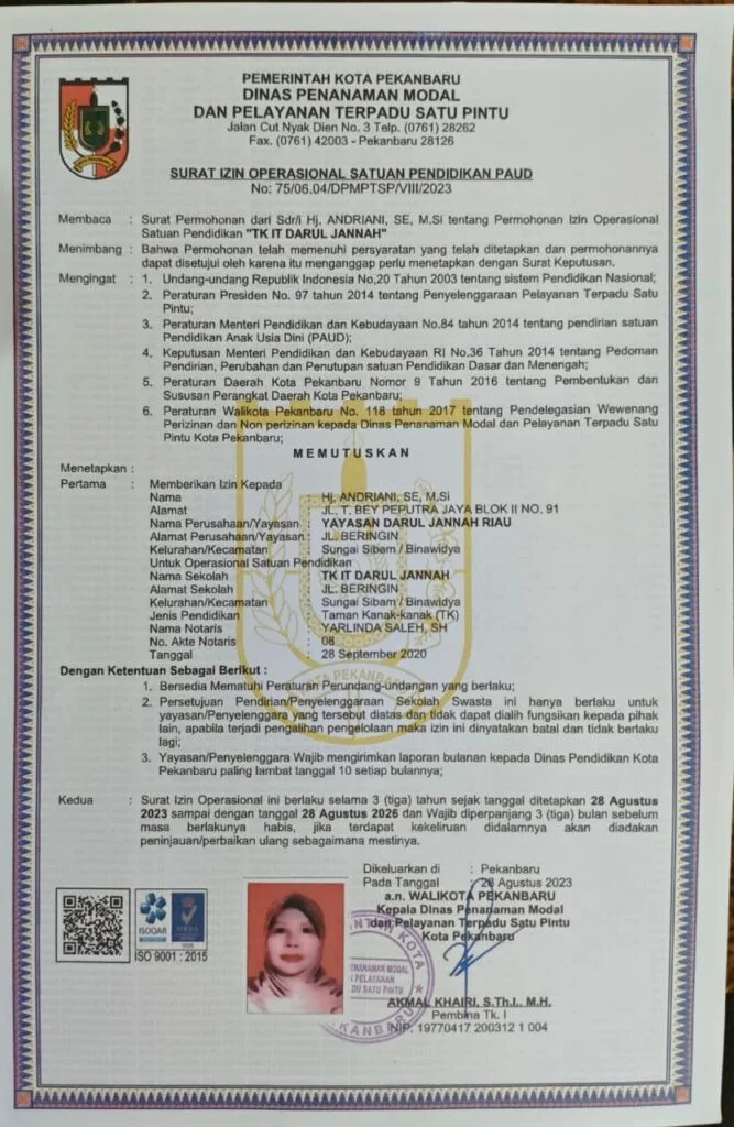 Program pendidikan anak usia dini berbasis Islam yang memadukan aspek kognitif, motorik, dan spiritual dalam suasana belajar yang menyenangkan dan aman.